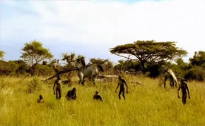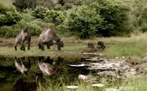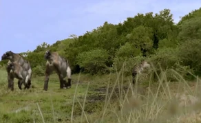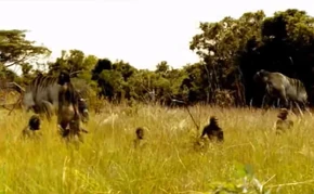It is first shown as a small herd appearing out of the jungle around the savannah. They travel towards the small lake to drink alongside the Australopithecus. After that they are shown in a mixed group of Ancylotherium and Australopithecus. One Ancylotherium was feeding on fruits lying on the ground, however an Australopithecus showed up and decided to scare it away so that it could have the fruits for itself.