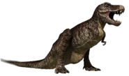 An antagonistic Tyrannosaurus rex named One-Eye is the main antagonist of Speckles the Tarbosaurus, personally killing the mother and siblings of the titular Tarbosaurus character, Near the end, Speckles drowns One-Eye in the ocean and two Tylosaurus help him avenge the deaths of his mother and siblings by taking the Tyrannosaurus rex as a meal for them.