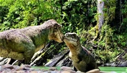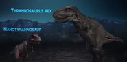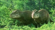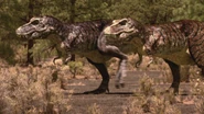 In the episode "Chicago", the Tyrannosaurus attacks an Edmontosaurus that was eating, a chase ensues and the T. rex manages to bite the hadrosaur's back but the Edmontosaurus escapes. In the episode "Denver", a battle between a Tyrannosaurus rex and a Triceratops takes place with the former winning before extinction.