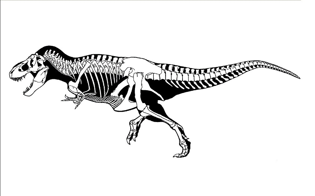 The Tyrannosaurus has a gray coloration with pronated hands, thin, and with a slightly long neck.