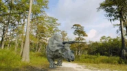 The T. rex in the documentary has long legs and a rather short tail, while also being quite thin. He has pronated hands and protruding teeth. Tyrannosaurus did not inhabit 70 million years ago.