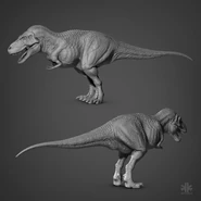 The design appearance of SUE & 1 or 2 of her kind was a cross between A few known previous T. rexes in the previous years. Jurassic Park Franchise, T. Rex Back to the Cretaceous, When Dinosaurs Roamed America, & Jurassic Fight Club.